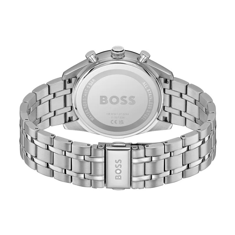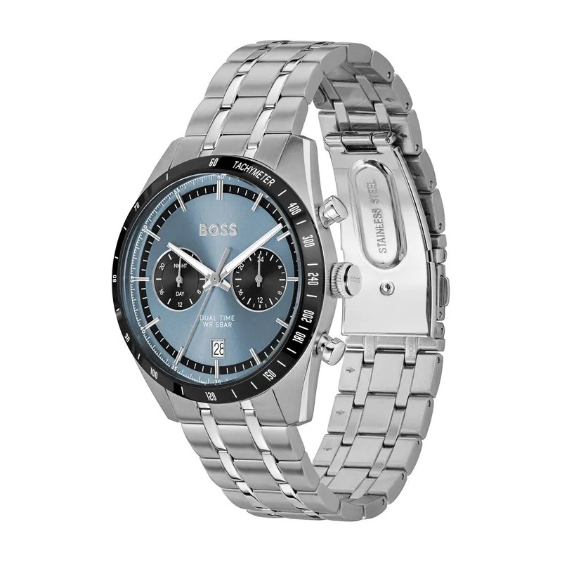 BOSS Tourmaster 1514286 on moderni ja arvokkuutta huokuva miesten rannekello, joka yhdistää klassisen muotoilun ja toiminnallisuuden. Kellon 41 mm runko on valmistettu kestävästä ruostumattomasta teräksestä ja sen viimeistelty hopeanvärinen pinnoite antaa tyylikkään ilmeen. Kokonaisuutta täydentää laadukas teräsranneke, joka tuo kelloon ajattoman eleganssin. Tyylikkäässä sinisessä taulussa on selkeät yksityiskohdat ja päivyritoiminto, mikä tekee kellosta käytännöllisen päivittäisessä käytössä. Luotettava kvartsikoneisto takaa tarkan ajanoton, ja taulua suojaa kestävä mineraalilasi. 50 metrin vesitiiviys tekee kellosta sopivan arkeen – se kestää roiskeet ja lyhytaikaisen veden kanssa kosketuksen.