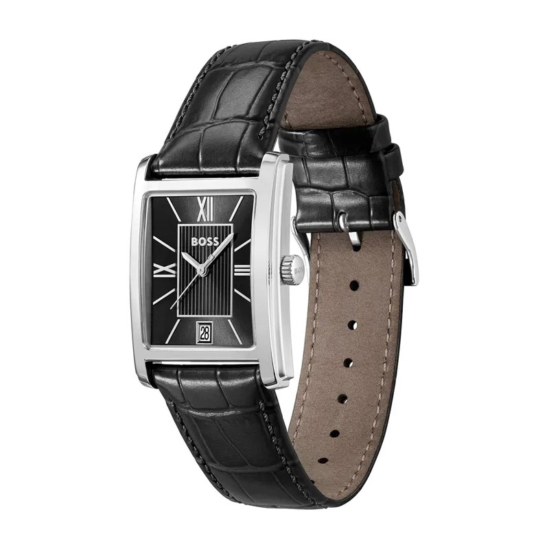 BOSS Principle Dress 1514277 on klassisen tyylin huipentuma, joka yhdistää elegantin muotoilun ja käytännölliset ominaisuudet. Sen 28 mm runko on valmistettu kestävästä ruostumattomasta teräksestä, ja kellossa on hienostunut musta taulu, jota täydentää roomalaiset numerot ja tyylikkäät yksityiskohdat. Kellossa on tarkka kvartsikoneisto sekä käytännöllinen päivyritoiminto, joka tekee siitä luotettavan kumppanin niin arjessa kuin juhlatilanteissa. Taulua suojaa mineraalilasi, ja laadukas nahkaranneke tuo kokonaisuuteen ajattoman eleganssin. 30 metrin vesitiiviys tekee kellosta roiskeenkestävän, joten se soveltuu hyvin päivittäiseen käyttöön.